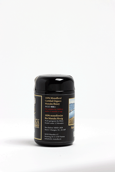 The MLM Manuka 806+ is the strongest organic Manuka honeys currently available on the market. This honey is a specialty, distinguished by its golden color and delicate aroma. Available in 125g and 250g Miron violet glass. Organic Manuka Honey (MGO 806+)